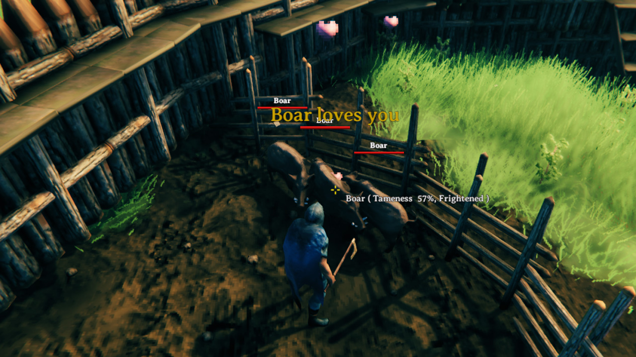 To get them on your side youll need to feed them so drop food like berries and mushrooms into the pen. The easiest and best Boar taming method in Valheim is to first build a pen out of wooden Roundpole Fences. When close to a boar a status tag that shows whether they are wild or tame and whether they are hungry happy frightened or acclimatizing. Check out this video to find out how to tame boars in ValheimCheck out the website.